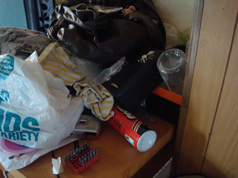 on closer inspection I found a collection Sims games, some of {S}'s tops, screwdriver bits, darts bits, my cash tin and lots of other crap!